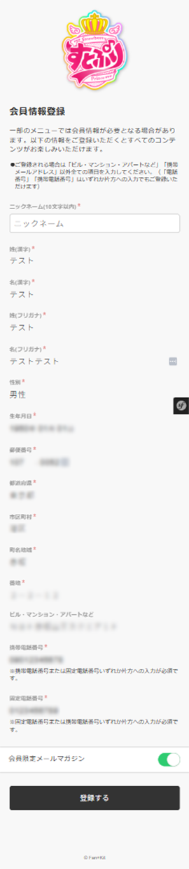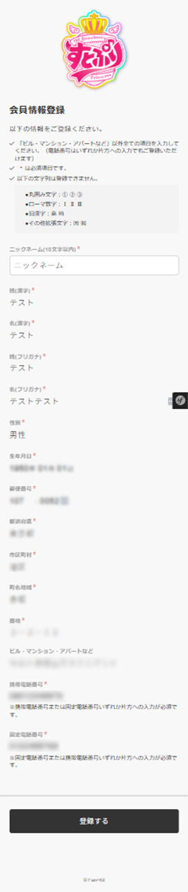 登録住所の入力・確認をしてください。 ※STPR IDでご登録のご住所とは異なりますので、内容をご確認ください。